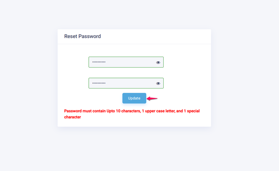 - After entering the new password click on the update button so that password will be updated and will show a Successful message.