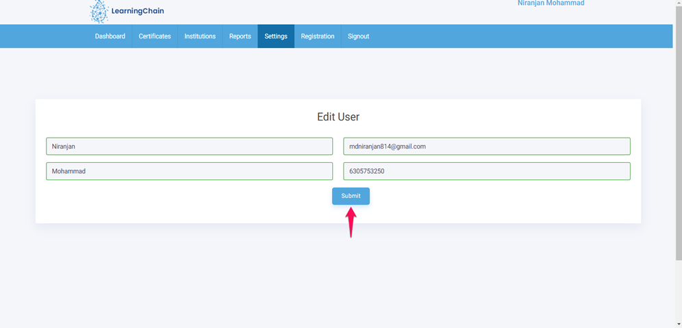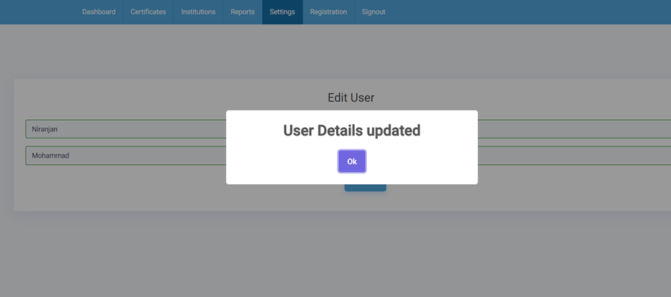 - After editing the details, click on submit Button so that details will be updated and will get a successful message.